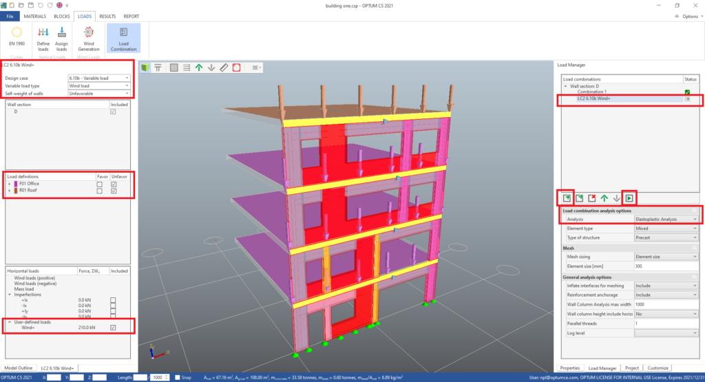 - Also change Variable load type to Wind load and Self-weight of walls to Unfavorable.
